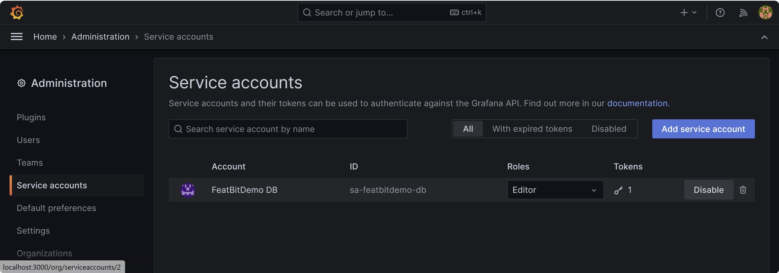 To use the Grafana integration, you need to create a Grafana service account and generate a service account token: